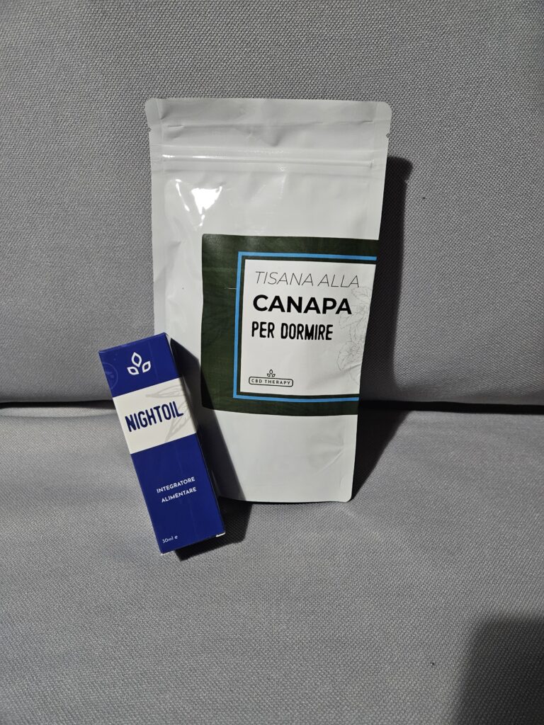 • Nightoil: Un olio di canapa naturale con melissa, passiflora, melatonina e olio essenziale di limone, progettato per migliorare la qualità del sonno, riducendo ansia e insonnia.